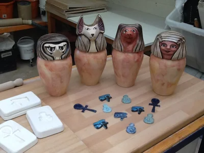 Two sets of replica canopic jars, amulets and Egyptian press moulds were made by Lorraine and her colleague Jo Stant in for Birmingham Museum and Art Gallery.
